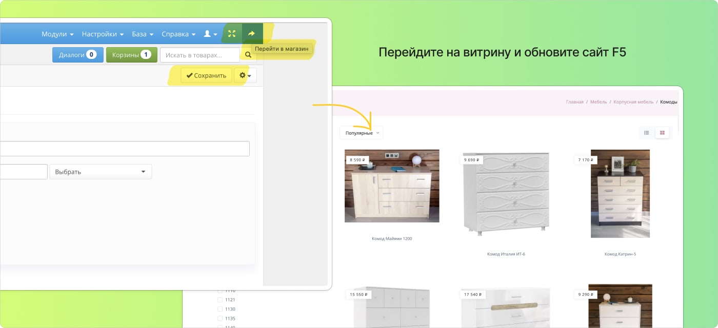 5. После обновления, можно проверить фильтры - напротив появятся цифры количества товара, лишние значения пропадут.
